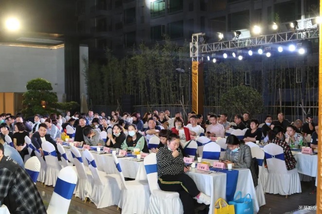 經銷商晚宴當日晚6時許,以【乘“圣”跨越】為主題的,zoty中歐體育官方網站集團第45屆國際家具展接待晚宴暨2020年度優秀經銷商頒獎盛典,在營銷中心四樓景觀花園隆重舉行,來自全國各地的經銷商朋友歡聚一堂,共同分享一場精彩紛呈的晚宴。