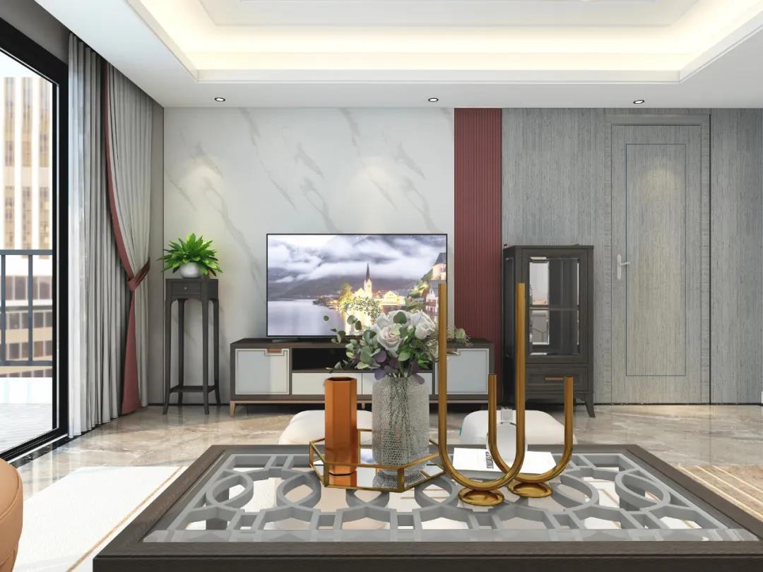 客廳在空間擺設上錯落有致,看似不統一的空間,在觀感上卻給人以整齊劃一的感官體驗,諾大的客廳區域由于大面積落地窗設計,充滿了自然光線,營造明亮和舒適的氛圍感,細節的幾何型燈具為室內增加照明強度,增添了溫馨感。現代的簡潔與美式輕奢的氣質相結合,散發著沉穩,而又不失清新的優雅格調。
