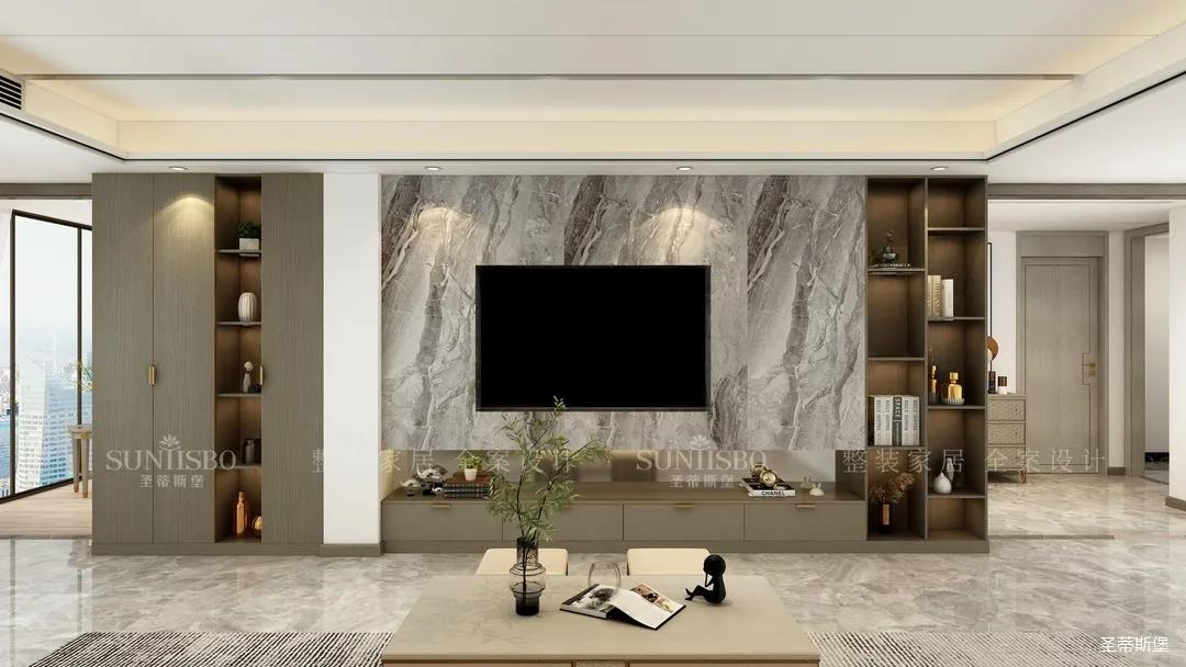 大理石的優(yōu)雅紋理,集實(shí)用收納一體的定制壁柜,