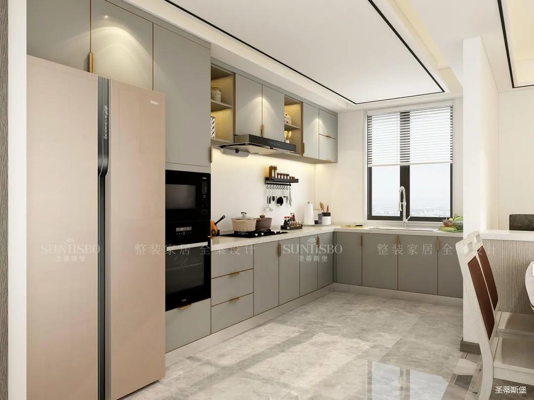 2. 打通廚房和餐廳,餐桌旁設(shè)置西廚區(qū)域。