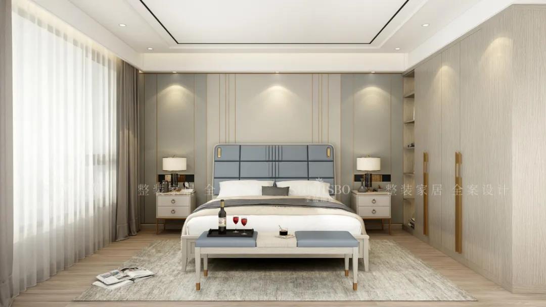 寬闊的就寢區(qū)搭配定制實(shí)木飄窗,將空間的舒適感達(dá)到極致。