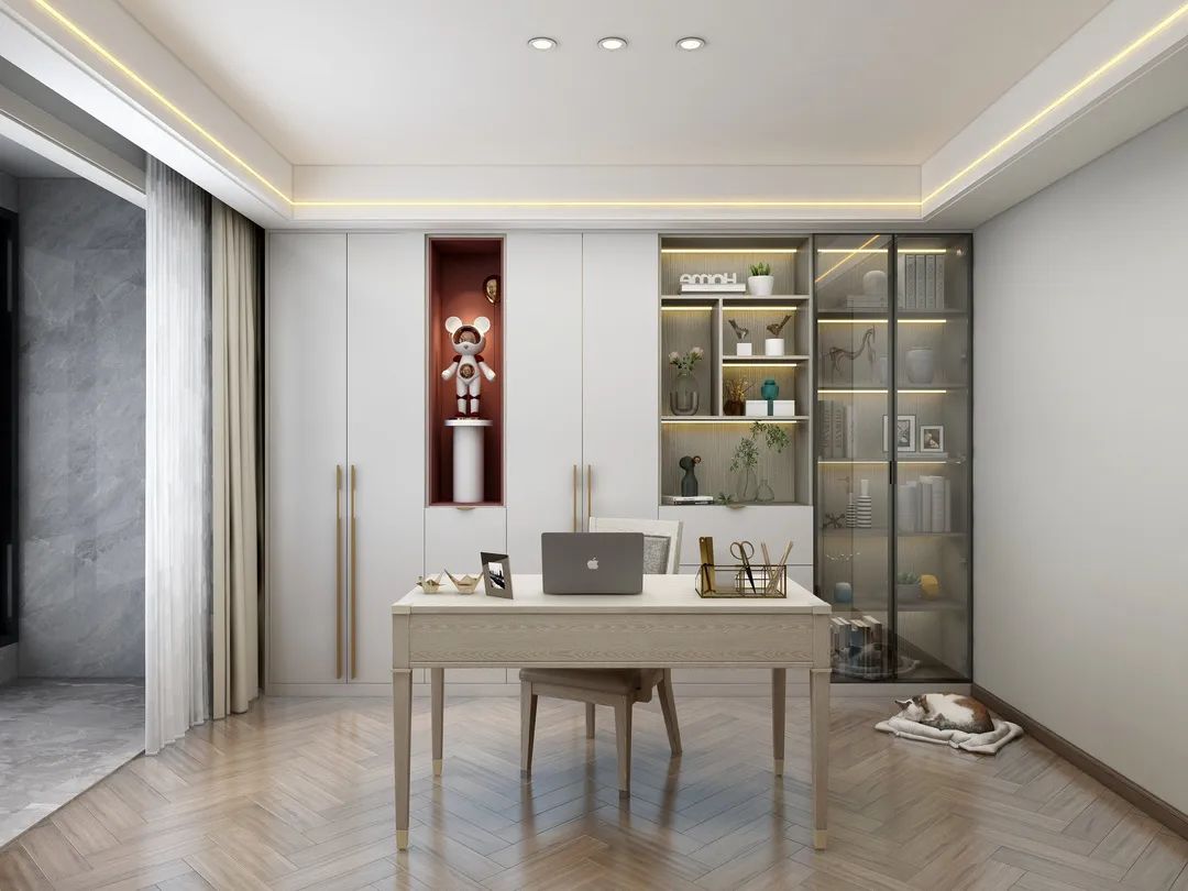 書房以和諧自然的材料,肌理化表現